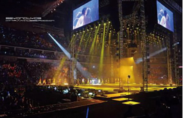 廣州國際體育演藝中心場館總建筑面積12萬平方米,定位主要是滿足NBA籃球比賽及文藝表演。為2010年廣州亞運會興建的體育館,按照NBA(美國籃球職業聯盟)制訂的標準設有18 000個觀眾席,從設計定位開始即打出“廣州國際體育演藝中心”的品牌,在建聲、擴聲及燈光系統設計和坐位布局上作了精心的策劃。場館的滿場混響時間(500 Hz~1 kHz)控制到1.7 s左右,125 Hz~4 kHz混響時間頻率特性曲線趨于平直。以這個比較優越的演出環境作為基礎,帶來了強大的商演吸引力。從舉辦2010年度NBA中國賽和第16屆亞運會等眾多體育賽事開始(圖3),十年來舉辦了湖南衛視、江蘇衛視跨年演唱會,郎朗獨奏音樂會,雅尼樂隊音樂會以及海內外二十多場眾多歌星演唱會(圖4)、車展和新車發布會(圖5)。