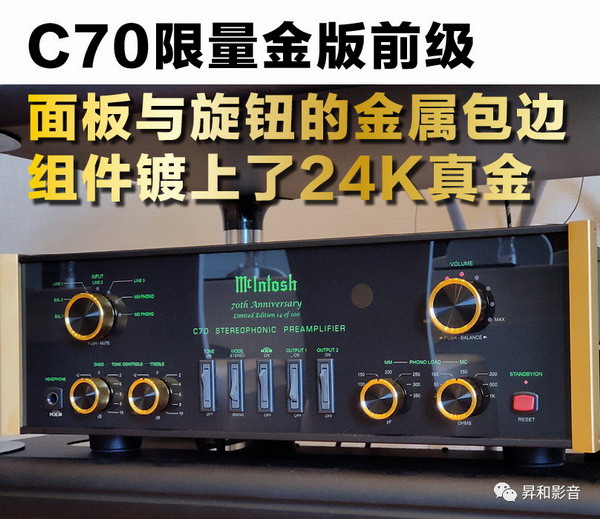 美國McIntosh麥景圖從1949年由Frank Mcintosh先生成立,紀念性限量金版型號:C70 GOLD LE電子管前級和MC70 GOLD LE電子管功率放大器。受非常深刻,整套系統播放的聲音的各頻段音色完美銜接,渾然天成不會有一絲的勉強,高音部分延伸得十分美妙,圓滑、悠揚、明確,且帶點炫人的光澤,泛音的豐富程度甚至已經達到當下音箱設計的極高水平。舒心地享受它那充滿流暢、自然、龐大從容的廳堂感。音質的韻味、滿溢的堂音、豐富的細節、鮮明的層次、猶如現場的活生感和溫潤感均令人陶醉。