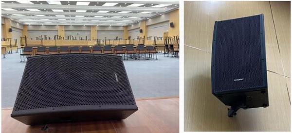 人社局多功能廳音頻擴聲系統,采用美國PHONIC揚聲器,考慮現場實際情況和業主的功能需求,左右主擴各采用6只KT-8八寸三分頻兩驅動線陣列揚聲器,和左右各2只配套吊掛超低KT8SUB,覆蓋全場觀眾席。