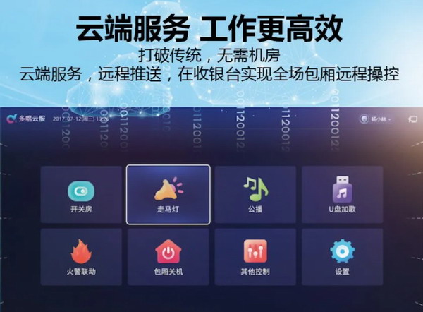 多唱云服:在收銀端就能實(shí)現(xiàn)全場(chǎng)包廂控制,無(wú)需機(jī)房。