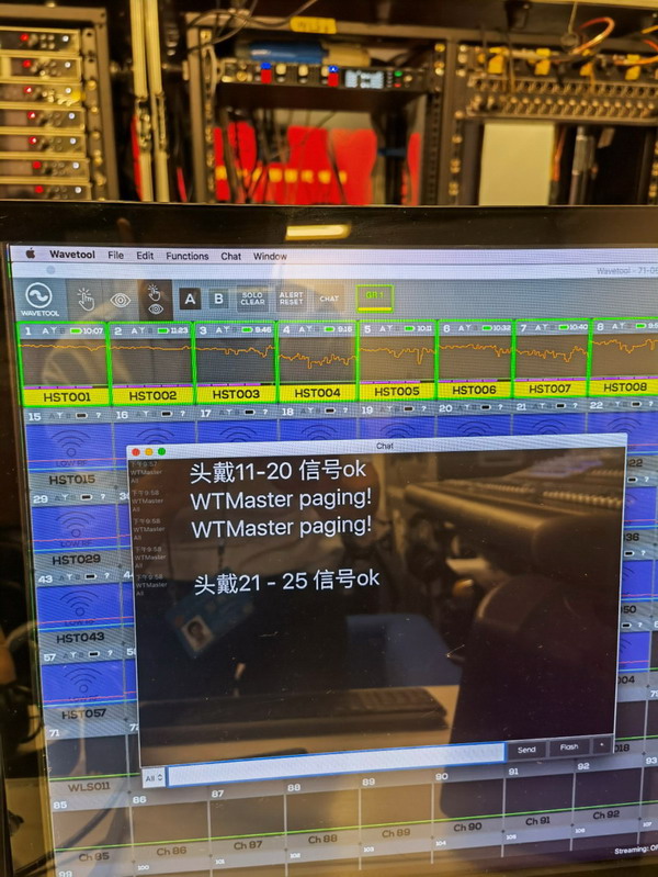 4層控臺(tái)區(qū)通過Wavetool軟件實(shí)時(shí)監(jiān)測每個(gè)無線通道音頻,