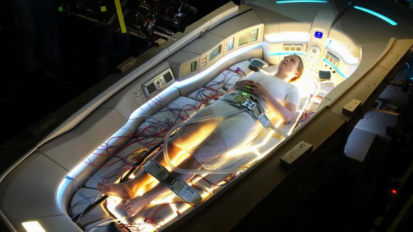 除了采用身體穿戴的錄音方式,二人也改裝了一支4080話筒,將它的所有泡沫材料去除,并把線材纏繞在Usra生產(chǎn)的理線器上,固定在冷凍艙的頂端,以便在話筒吊桿無法使用的場(chǎng)景中拾音。Panchout解釋說:“由于一些光線會(huì)透過有機(jī)玻璃艙蓋,反射到梅拉妮的臉上,拍攝時(shí)不適合使用話筒吊桿,因此這是唯一的解決辦法。” 此外,由于攝影機(jī)在不斷移動(dòng),操作話筒吊桿也很困難。因此,DPA的話筒,尤其是4080話筒,為確保聲音在不同位置的有效拾取提供了必要的技術(shù)支撐。
