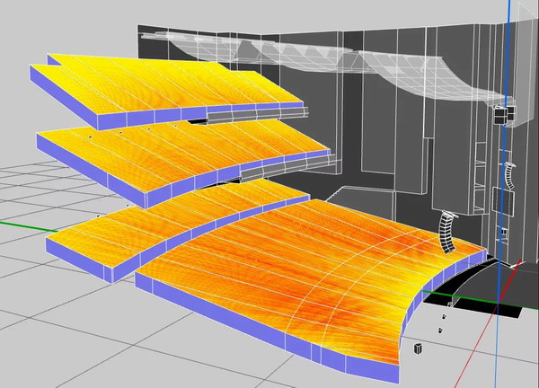 左右聲道使用緊湊型的Karai。Karai揚聲器之間的垂直角度最大可調至10°,且不會影響相鄰音箱之間的聲耦合。最大聲壓級可達141dB,明裝吊掛至舞臺左右上方,通過合理的設計確保了整體的美觀和聲場的均勻覆蓋。明裝吊掛的方案有效避免腔體反射與共振問題,讓聲音更直接。