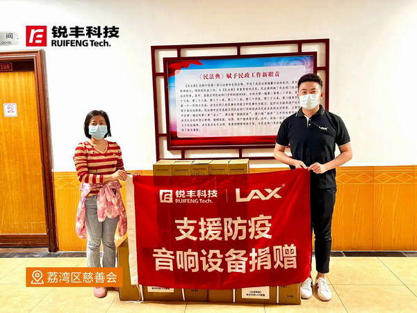 作為廣州本土的企業,銳豐科技在本輪疫情防控中積極履行社會責任,響應號召支援抗疫工作,為黃埔區、從化區、增城區、南沙區、番禺區、荔灣區等區域捐贈1200多套擴聲設備,用實際行動構筑廣州疫情防控“同心”防線,傳遞抗擊疫情正能量。