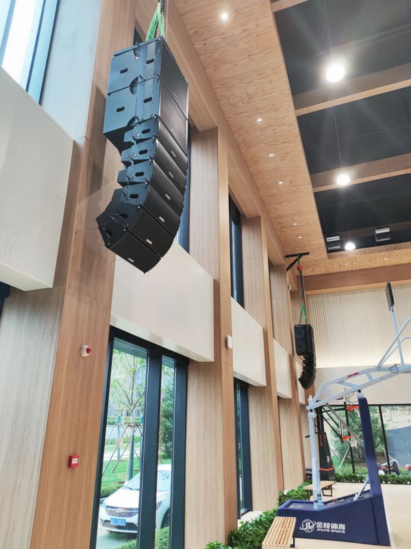 阿朵·李寧運動中心,建有一個400㎡的室內體育館,為保證體育館內聲場聽覺均勻,保證全場有較高的語言清晰度,迪士普工程師依照廳堂擴聲系統設計規范進行設計,在場館兩邊安裝了兩組由6只無源陣列全頻音箱和2只無源線陣列超低音箱組合而成的線陣列音箱,大功率下不失真,低頻強勁有力,并能長時間提供足夠的聲壓,沒有出現失真、偏音、混音、嘯叫等不良音響效果。