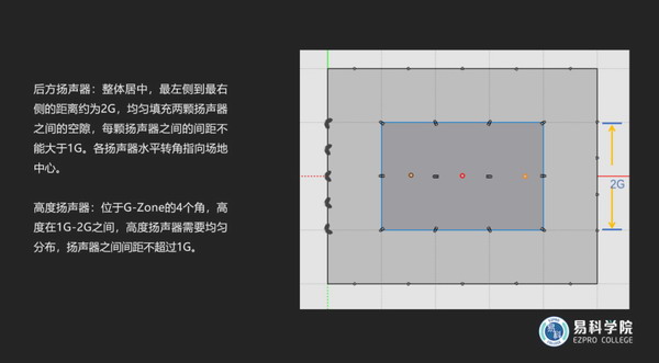 在最后的常規劇院沉浸式擴聲系統設計的講解中,冀翔以劇院模型為例,陳述了實際應用場景中應該注意的事項,尤其強調了補聲系統在沉浸式擴聲系統設計中與主系統的關系,建議大家從均勻度和聲音軌跡運動兩方面來驗證系統設計的合理性。