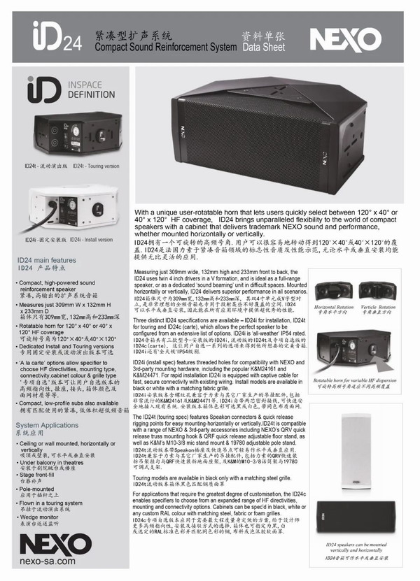 整個系統由2只P12垂直安裝在舞臺兩側的正廳座位和大環形的高度,另外兩只安裝在前面的桁架上,用于更廣闊的上層環形觀眾席。額外的水平安裝的P12作為延遲部署在臺前5米左右的正廳座位和大環形的高度,2只ID24在頂部發揮類似的作用。兩對L15超低頻音箱放置在地板上,4只ID24用于舞臺前補聲,3只ID24用于每個陽臺下方補聲。