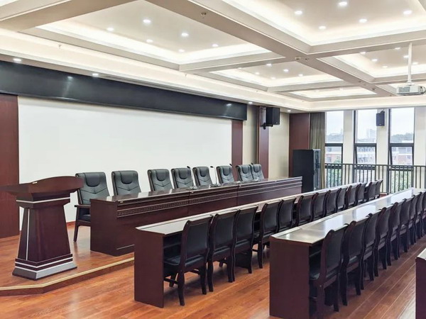 潛江市政府人大會議室選用公信會議Z4平臺下的討論表決系統,采用5600系列嵌入組合式搭配4300系列臺式產品,通過搭載公信智能會議管理系統、自動攝像跟蹤功能,更好地滿足人大常委會會議簽到、發言、電子表決、攝像跟蹤的需求。