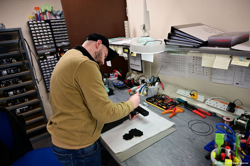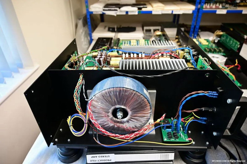進入另一個房間,這里主要負責組裝與包裝等工作,AVID所有產品都是在自家工廠純手工組裝,照片中資深電子工程師David Sharp,正在非常熟練地組裝AVID放大器。