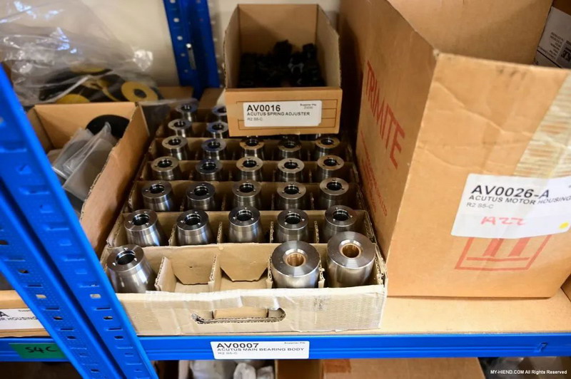 這里主要負責唱盤相關組裝與售后服務的地方,AVID的產品相當實在耐用,20多年來很少有回廠維修的,因此AVID也沒有特別設立專門的維修部門,畢竟需要維修的產品數量太少,采訪時剛好有一座22年前的Acutus唱盤送回來,原因是用家忘記自己有這唱盤,因此放在戶外雨淋日曬,導致其外面鍍層都已經氧化,經過AVID整修后已經完美如新,其需要更換的零件也直接就從架上可以取得,完全跟22年標準規格一樣馬上可以套用,當天已經準備打包寄送回給客戶了,這樣的質量與服務太令人放心了。
