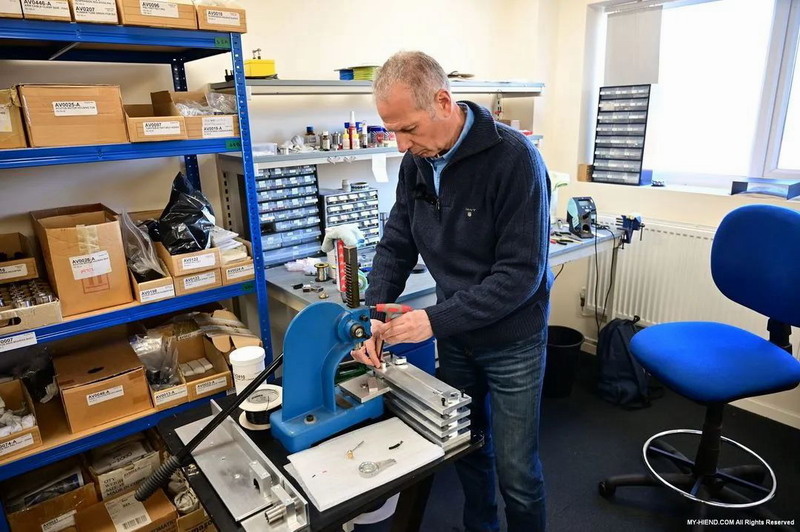 AVID共有3大臺CNC金屬加工機器,由已在AVID工作20年的Gary Cooper負責,AVID由大到小,幾乎所有的元件都是在此生產,為什么我說”幾乎”,Conrad很老實的告訴我,一些連接端子臺灣做的質量又好,價格又合理,因此AVID的端子是向臺灣訂制的。為了更有效率與具規模經濟,每一個元件都是獨立批次大量生產,當天Gary就在生產用于唱臂的針壓配重環(Counterweight ),沒錯,AVID的唱臂已經快要發表了。
