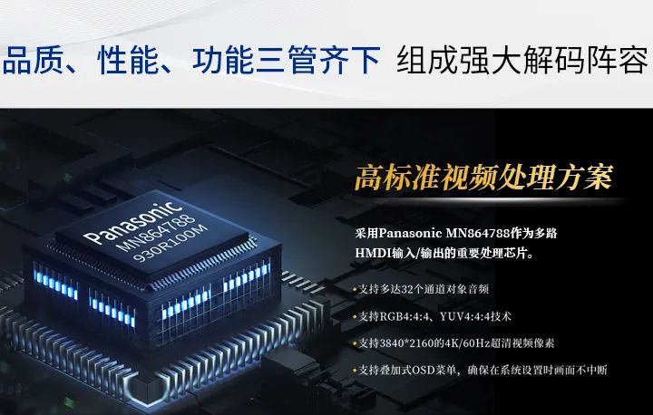 2、支持HDMI 2.1,支持HDCP2.2加密協(xié)議;支持4K/60Hz,RGB 4:4:4,18G全帶寬高清視頻信號(hào);支持Dolby Vision及HDR 10高清視頻信號(hào);