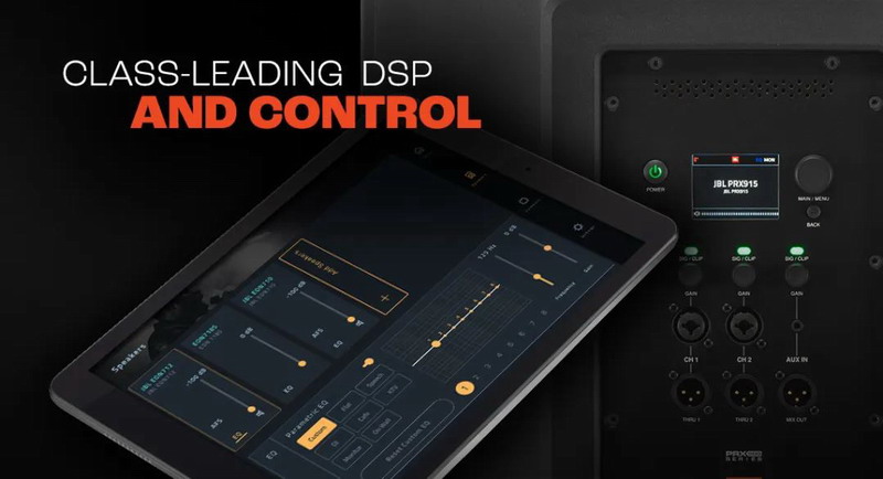 PRX900系列的集成DSP可通過板載LCD和Pro Connect應(yīng)用訪問,里面包括可用于系統(tǒng)調(diào)整和音色控制的12段參量均衡器,并集成了dbx Drive Rack技術(shù)(現(xiàn)場(chǎng)和固定安裝自動(dòng)反饋抑制,均帶有Soundcraft Overeasy選項(xiàng)),以及和揚(yáng)聲器延遲設(shè)置和預(yù)設(shè)。