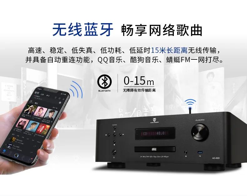 以天逸30年高保真Hi-Fi設(shè)計(jì)經(jīng)驗(yàn)、技術(shù)功底及聲學(xué)底蘊(yùn)作基石,新品AD-89D采用超甲類(lèi)電路設(shè)計(jì),特別增加CD播放功能,并支持藍(lán)牙/U盤(pán)/TF卡等流媒體播放功能,提供更多樣的音源輸入選擇。此外,AD-89D還配有USB-Audio輸入接口、HDMI ARC音頻回傳以及超低音信號(hào)輸出接口,專為新生代高品位發(fā)燒友量身打造。