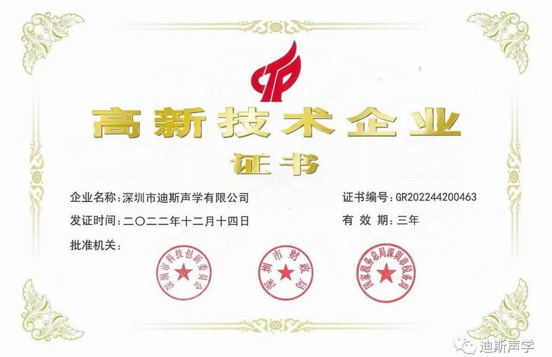 并且DESFINE迪斯再次成功通過了“國家高新技術企業”榮譽稱號的認定,是國家重點支持的高新技術企業。