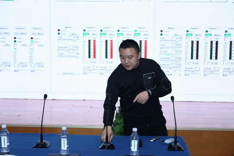 隨后,易科多位同事進行了配合宣講和演示。王添嗣老師為大家演示話筒全開但不產生嘯叫。