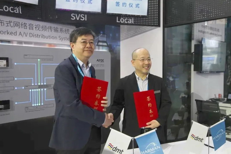 5月23日廣州PLS展會第二天,哈曼(中國)投資有限公司在展位上宣布了兩項重要的戰略合作伙伴計劃,并舉辦了簽約儀式,標志著哈曼專業進一步完善中國港澳地區AMX愛明思市場與全國酒吧市場的銷售網絡布局,具有里程碑式的意義。