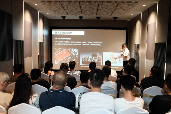 本次品鑒活動設立了“家庭影院鑒賞區(qū)”體驗奢華家庭影院系統(tǒng)的震撼音效,同時也設立了“HiFi品鑒區(qū)”讓大家感受優(yōu)美音樂。《家庭影院技術》雜志社副主編鄧冠奇先生主持家庭影院演示部分,為觀眾講解多聲道的發(fā)展并分享最新影片。鄧冠奇先生提到多聲道沉浸式音效的目的是為了讓觀眾完全融入到電影的情節(jié)和氣氛之中,在觀影的過程中,感受聲場的高度感、速度感和動態(tài)。并且通過多個精彩的電影片段來給大家展示沉浸式音效的聲音效果。