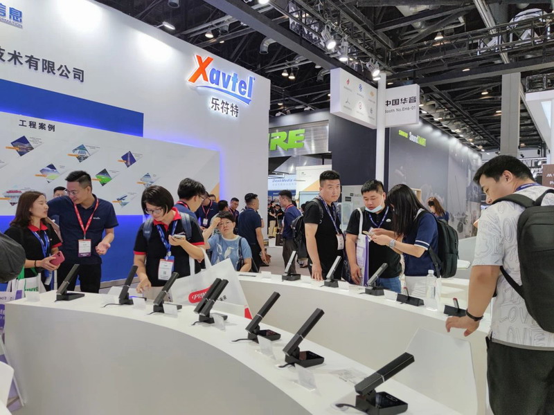 在L形桌及掛壁展示區(qū)我們準備了桌面式無紙化、無線會議話筒、三網一體會議系統、擴聲系統等一系列豐富的產品供客戶及觀眾欣賞體驗。