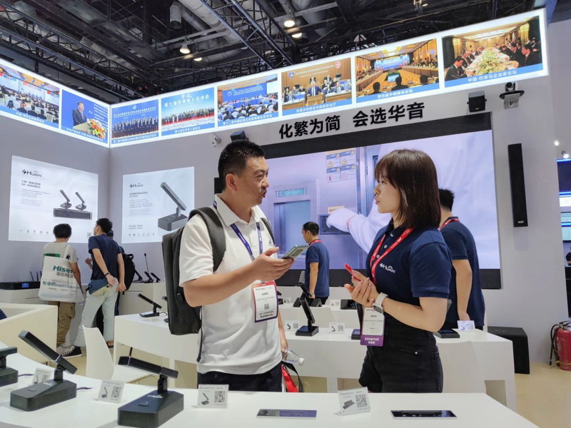 在 HUAIN 華音的展位上,我們帶領客戶及參觀者親身體驗我們最新推出的高科技會議音頻設備, 沉浸式感受HUAIN 華音產品帶來飽滿清晰的音質和煥然一新的視覺效果。