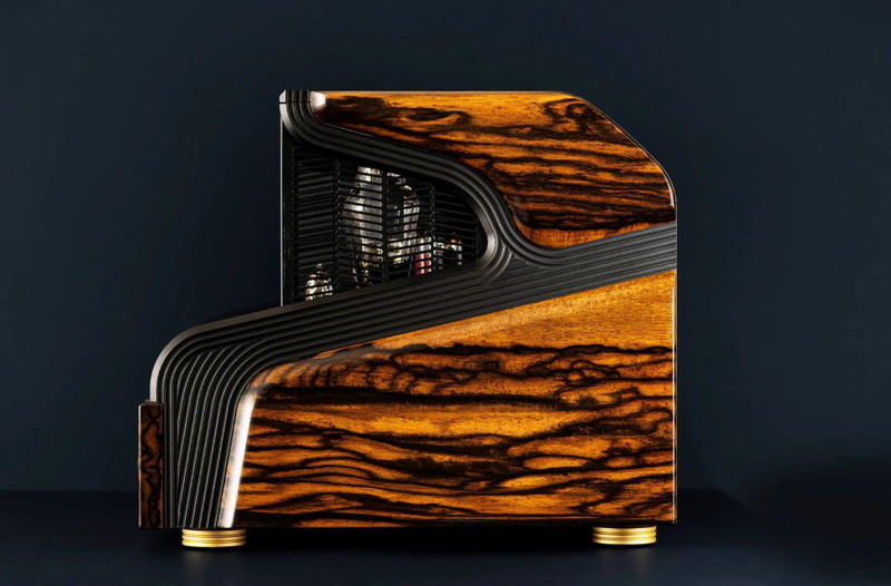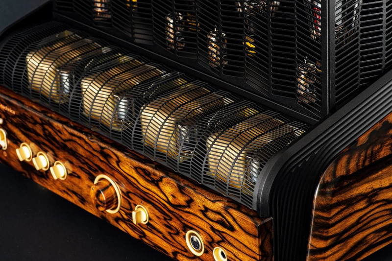 鳴神放大器采用了黑柿木,這種稀有的自然奇跡是透過百年以上的時間,形成了獨特的水墨畫般紋路。由于質地特殊使得木材干燥過程非常復雜,只有老練的工匠有能力處理黑柿木。而點綴在放大器頂部的精致圖案,靈感來自“枯山水”,一種傳統庭園造景。圖案沿著放大器的兩側延伸,象征了流動以及代表無限的符號(∞)。而8在亞洲文化中也帶有吉利的意味。