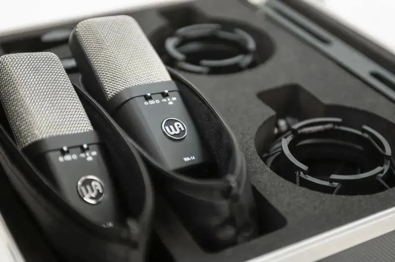 全套立體聲套件包括一個定制飛行箱、兩支 WA-14 話筒、兩個防震支架、兩個簡易話筒夾、兩個耐用旅行袋和立體聲安裝支架,可確保每次都能可靠放置。單支 WA-14 話筒已在 Warm Audio 天貓旗艦店發售,立體聲配對套裝即將到貨,敬請期待!
