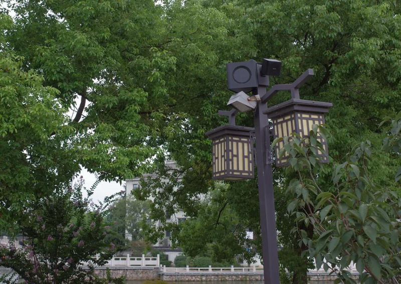 為真正做到一步一景,整個古鎮的游覽通道上都設計了全覆蓋的音響系統,例如:在沿途步道的燈桿頂端安裝了2只 GH4 緊湊型高功率全頻揚聲器。僅有10厘米的方形尺寸幾乎隱藏在中式仿古造型的燈桿結構中,十分美觀。小巧的尺寸和輕量化的設計可以讓2只 GH4 在緊湊的空間中朝向不同的覆蓋方向安裝。同時,GH4 可以提供單只122dB 的驚人峰值聲壓級。