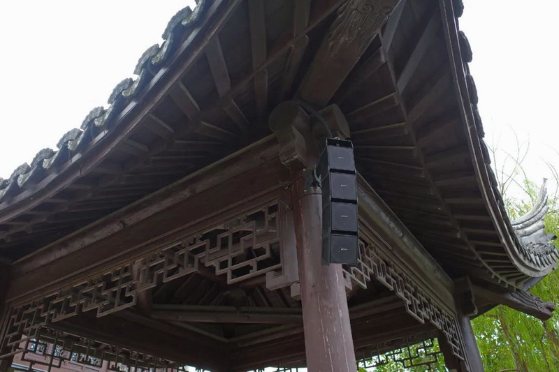 例如,根據聲音覆蓋的大小和聲壓級需求,在廊橋和城樓景點選用了不同數量的 GH12 組成不同尺寸的陣列。