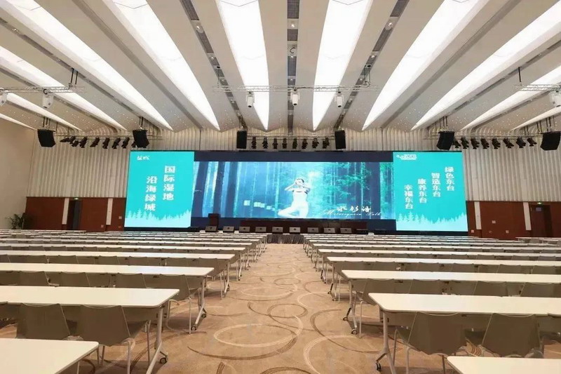 國際會議中心從運營方式上分為三大獨立版塊,便于各自獨立運營。東區(qū)為大型會議及宴會功能區(qū),西區(qū)為主題餐飲及VIP會議區(qū),中區(qū)為公共接待網(wǎng)紅打卡區(qū),三個獨立運營區(qū)塊借助半戶外坡道連廊,實現(xiàn)各層的空間聯(lián)系。為了滿足會務(wù)中心不同廳堂的需求,易科為黃海森林公園國際會議中心的東區(qū)多功能廳、會議室,東區(qū)宴會廳,西區(qū)董事會議室、酒吧以及中區(qū)書吧等主要廳堂提供了專業(yè)音視頻整體解決方案,確保活動期間的音視頻效果清晰、穩(wěn)定。
